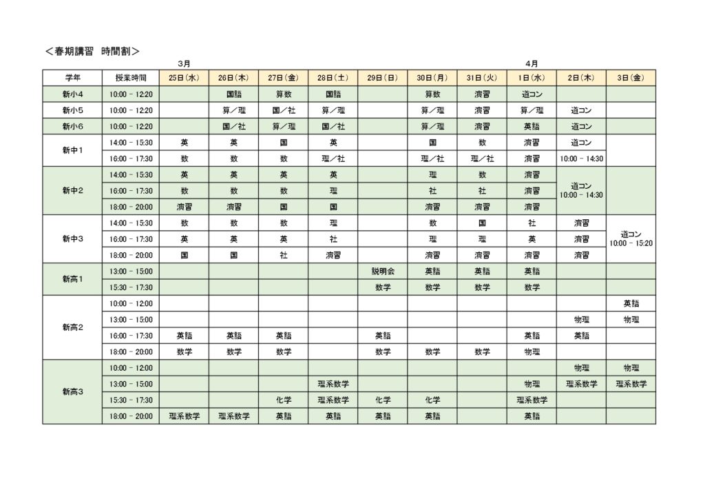 | 新 高校1年生 | 4日間(14時間):通常20,000円 ➡ 特別料金 10,000円 |